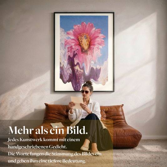 The Big Look bringt den hochwertigen Gallery Look in dein Zuhause: ruhig, klar, präsent. Jedes Motiv ist so kuratiert, dass es den Raum sofort stimmiger und hochwertiger wirken lässt. In Museumsqualität gedruckt und mit einem handgeschriebenen Gedicht als ein Werk verbunden, wird daraus ein Statement, nicht einfach Deko.