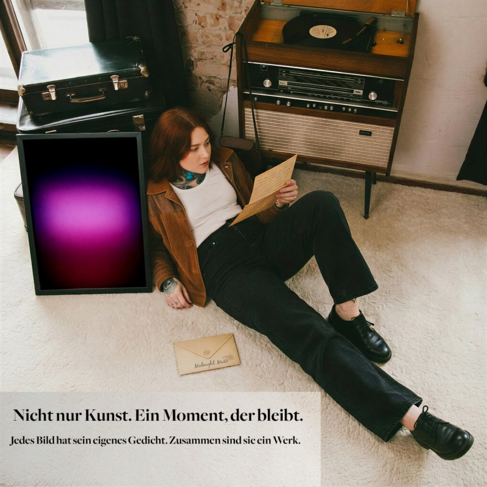 Nocturnal öffnet einen tiefen, stillen Raum aus Violett, Magenta und samtenem Schwarz, in dem das Licht wie aus der Dunkelheit heraus zu glühen scheint. Die weichen Übergänge wirken geheimnisvoll und ruhig zugleich, als würde die Nacht selbst atmen. Das Werk verkörpert zeitgenössische Malerei von intensiver Zurückhaltung, eine moderne Wandkunst voller Tiefe, Intuition und leiser emotionaler Spannung.