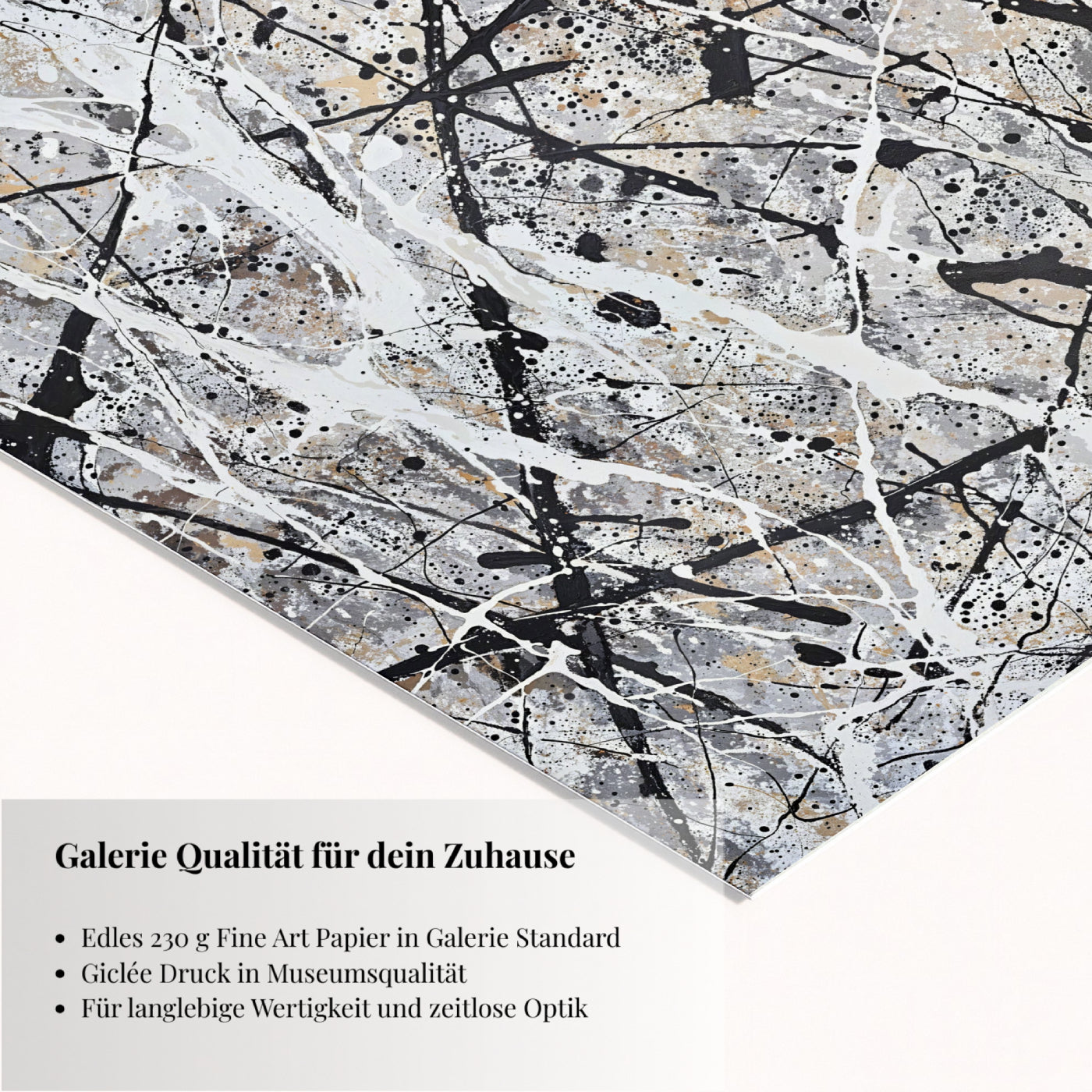 The Soul of a Human ist ein intensives, abstrakt expressionistisches Werk über Bewegung, Spannung und innere Tiefe. Schwarze und weiße Gesten durchziehen eine strukturierte Fläche aus Grau und Beige und spiegeln die Komplexität menschlicher Gedanken und Gefühle. Das Zusammenspiel aus Rhythmus, Textur und Offenheit verleiht dem Werk eine rohe, zugleich elegante Präsenz.
