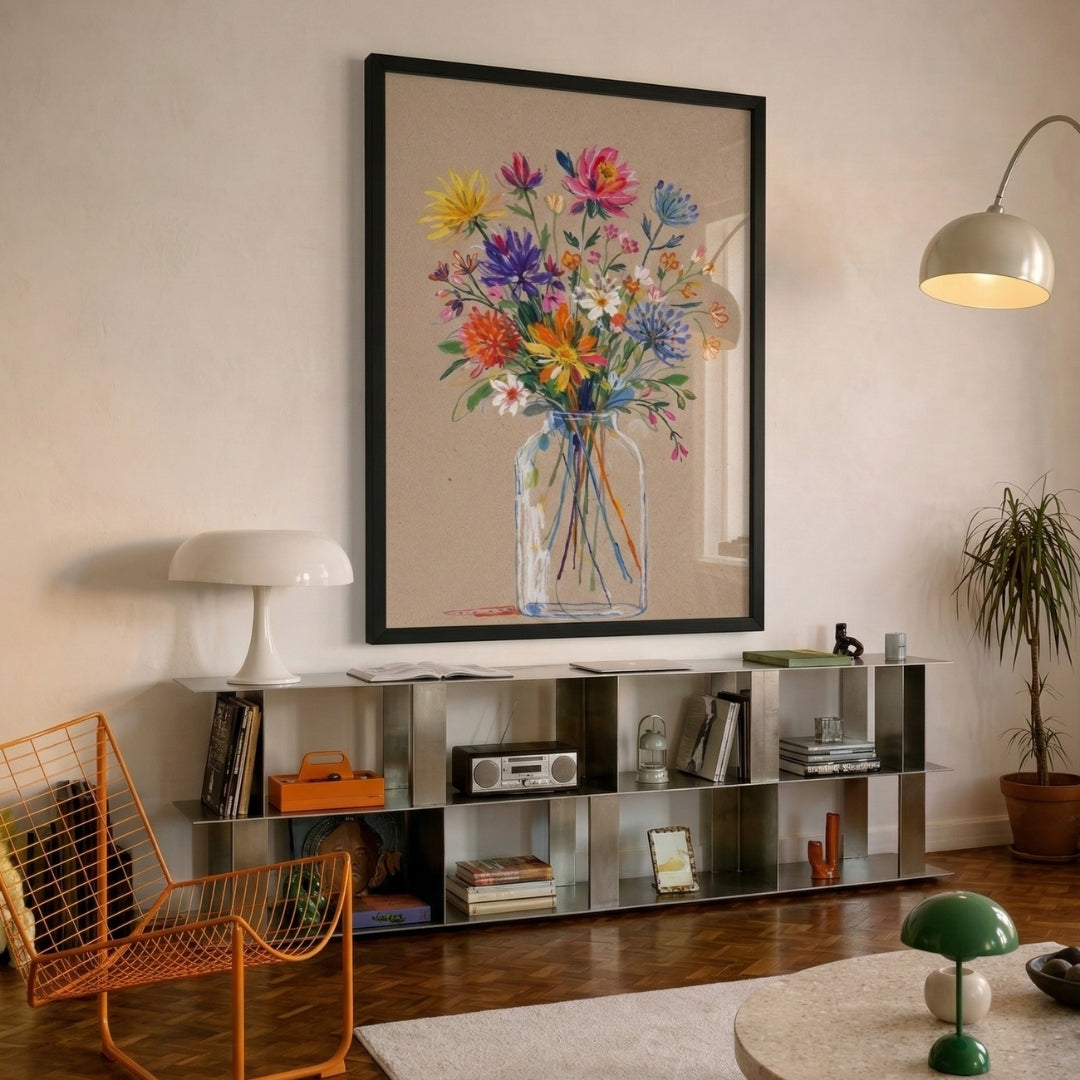 Dieses Werk öffnet die Wand und gibt dem Raum mehr Ausstrahlung. Es schafft eine freundliche, helle Atmosphäre und bringt zugleich eine sichere gestalterische Ruhe mit. Besonders in klaren Interieurs, Wohnbereichen oder stillen Ecken wirkt es wie ein natürlicher Mittelpunkt, der alles weicher, wärmer und hochwertiger erscheinen lässt. Du triffst damit eine starke Entscheidung für einen Raum, der Charakter, Frische und Präsenz braucht.