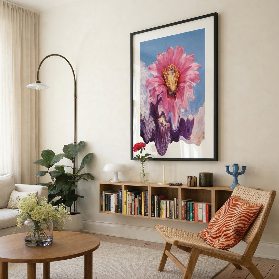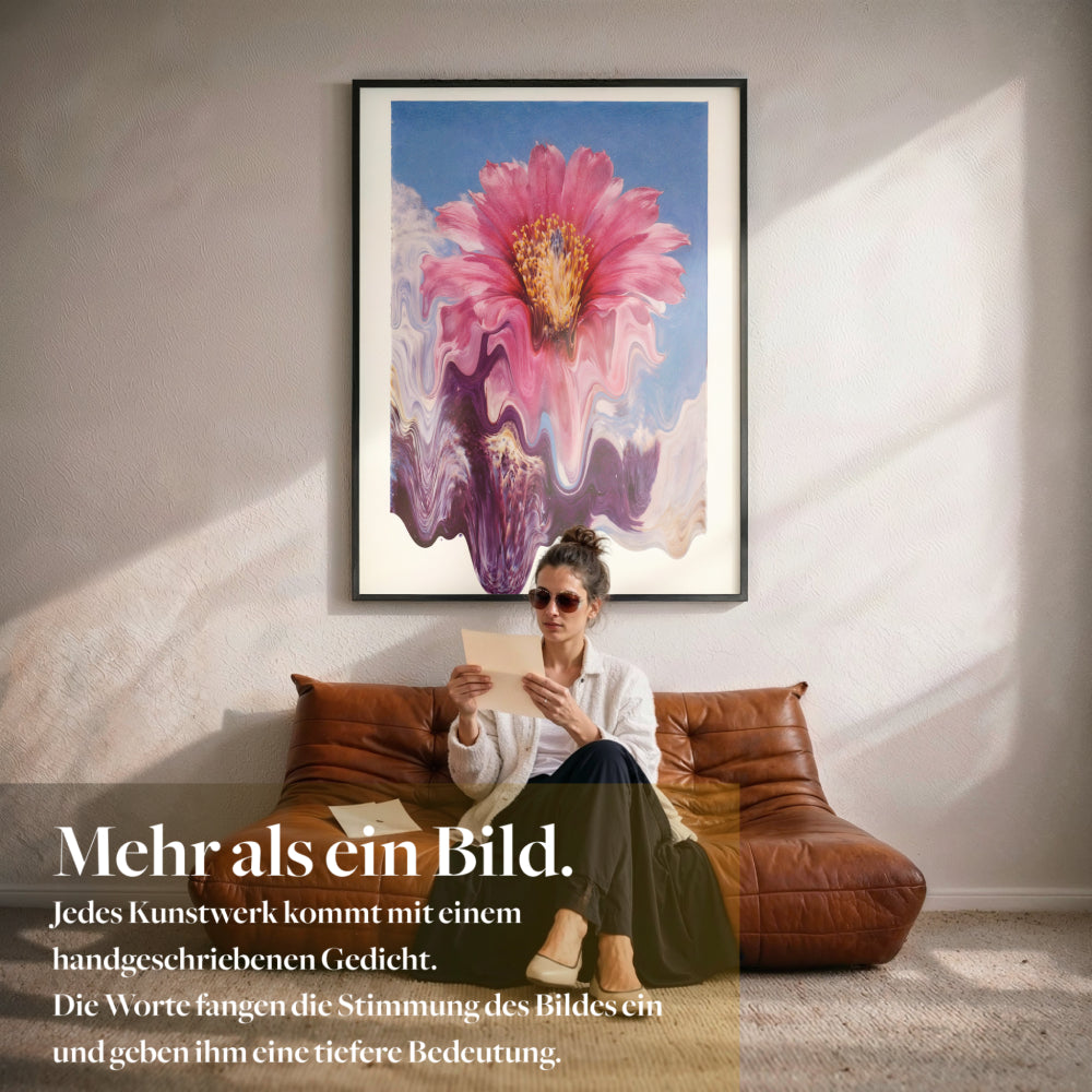 Die starke Bewegung im Bild zieht den Blick sofort an und verleiht der Wand eine kraftvolle Präsenz. Gleichzeitig bleibt die Wirkung leicht und offen, sodass der Raum Energie bekommt, ohne überladen zu wirken. Die Kombination aus Dynamik und Farbe schafft eine Atmosphäre, die Kreativität und Ausdruck in den Raum bringt und ihn spürbar interessanter macht.