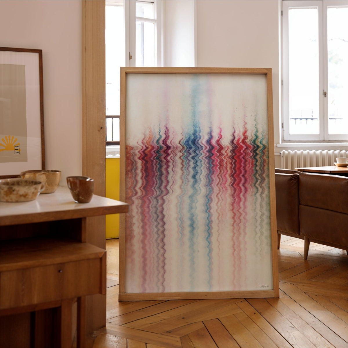 Dieses Kunstwerk bringt Harmonie und sanfte Bewegung in den Raum. Die fließenden Übergänge schaffen eine entspannte Atmosphäre und verleihen dem Ambiente eine ruhige, lichtvolle Präsenz