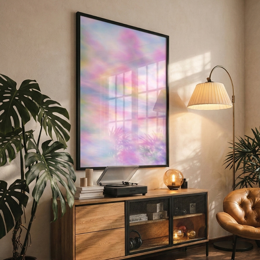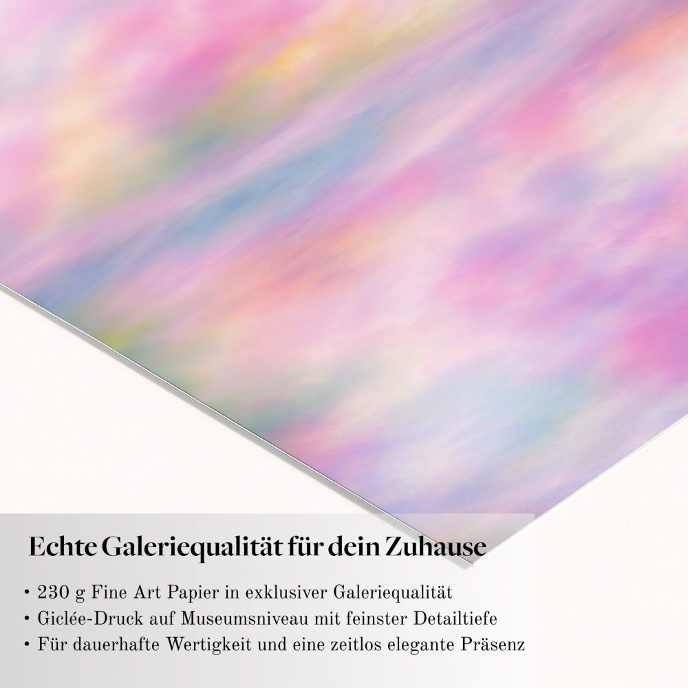 Die weichen Farbflächen öffnen die Wand und lassen den Raum weiter und heller wirken. Alles wirkt ruhiger und geordneter, ohne an Lebendigkeit zu verlieren. Das Bild schafft eine sanfte Präsenz, die sofort spürbar ist, ohne sich aufzudrängen. Du gibst deinem Raum damit eine Atmosphäre von Gelassenheit und Tiefe, die dauerhaft wirkt und jeden Blick auf die Wand wertvoll macht.