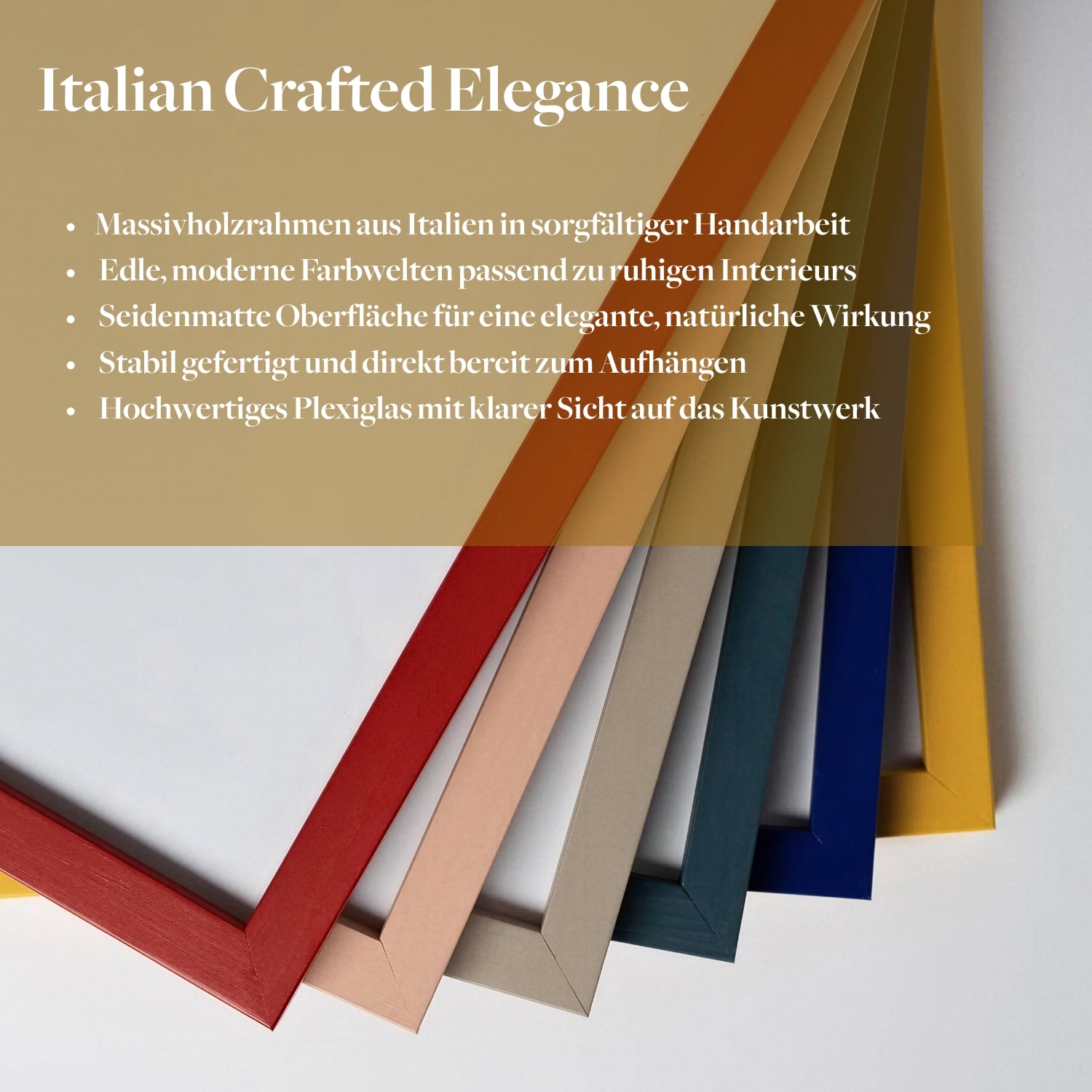 Ja. Wenn du einen Rahmen bestellst, kommt dein Kunstwerk bereits eingesetzt, mit stabiler Rückwand und Aufhängung. Die Rahmen werden in Italien von Hand gefertigt. Du musst es nur noch auspacken, den passenden Platz wählen und aufhängen.