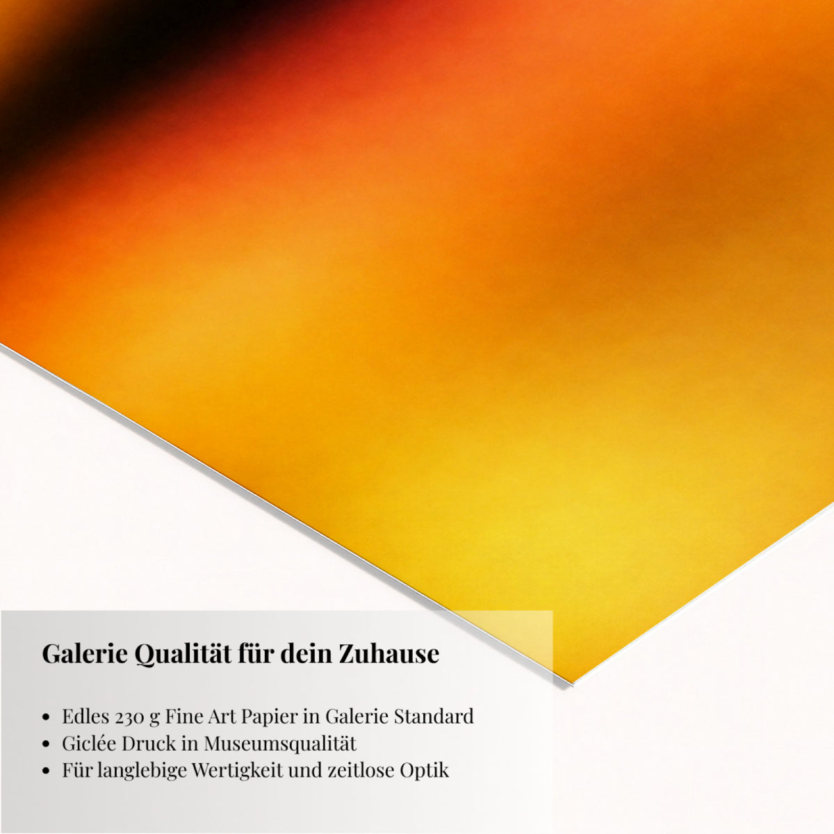 Wir verwenden 230g schweres Fine Art Papier mit spürbarer Struktur und archivfeste Tinten. Die Museum Giclée Drucktechnik sorgt für klare, tiefe Farben und feine Übergänge, wie man es aus Galerien kennt. So bleibt dein Kunstwerk viele Jahre farbstabil und wertig.