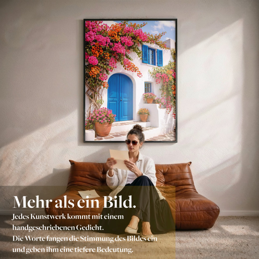 Du erhältst einen Galerie Fine Art Print auf schwerem, archivfestem Papier in Museumsqualität, gefertigt mit professioneller Giclée Technik. Wenn du einen Rahmen auswählst, kommt dein Kunstwerk fertig gerahmt zu dir, inklusive handgeschriebenem Gedicht Brief, bereit für deine Wand.