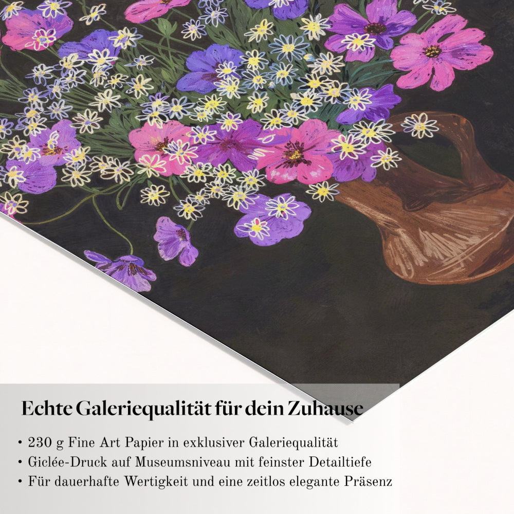 Der Druck erfolgt als Museum Giclée mit außergewöhnlicher Detailtiefe und präziser Farbwiedergabe. Gedruckt auf archivfestem 230 g Fine Art Papier entsteht eine langlebige Galeriequalität. Die matte, fein strukturierte Oberfläche verleiht dem Werk Tiefe, ohne zu spiegeln, und sorgt für eine hochwertige Haptik mit spürbarem Premium-Gefühl.