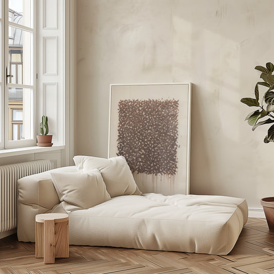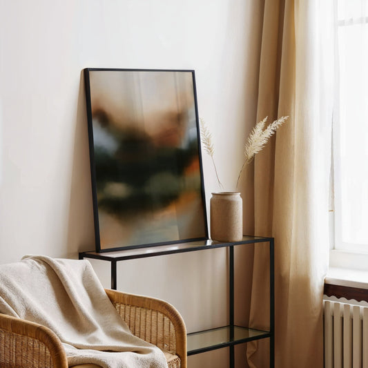 Leichte Unterschiede sind möglich, weil jeder Bildschirm Farben anders darstellt. Unsere Drucke werden jedoch kalibriert produziert, damit sie der Bildwirkung so nah wie möglich kommen. Die gedämpften, ruhigen Töne sind bewusst gewählt, damit die Kunst in modernen Interiors natürlich wirkt.
